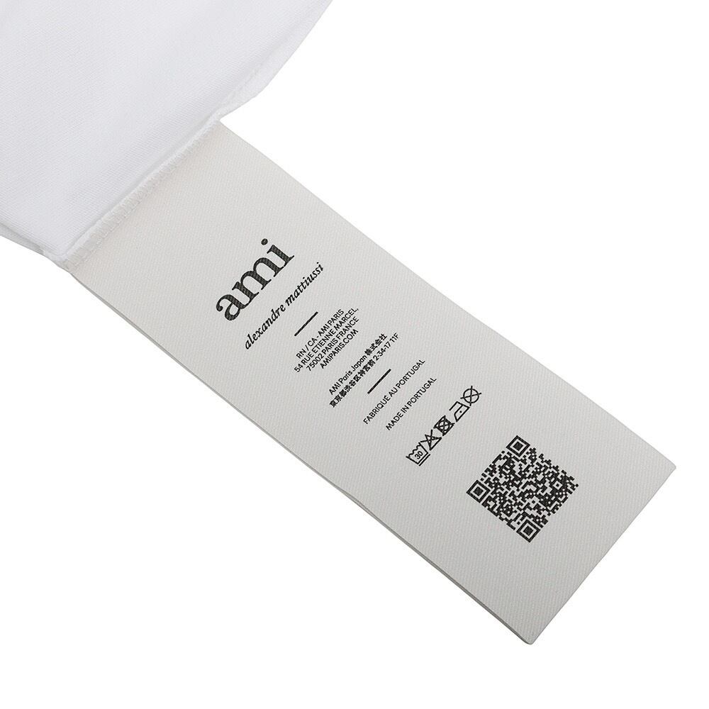 胸元にレッドのAmi de Coeur 刺繍、首元後ろに同系色の"AMI"刺繍、カラー:100/BLANC(ホワイト)
