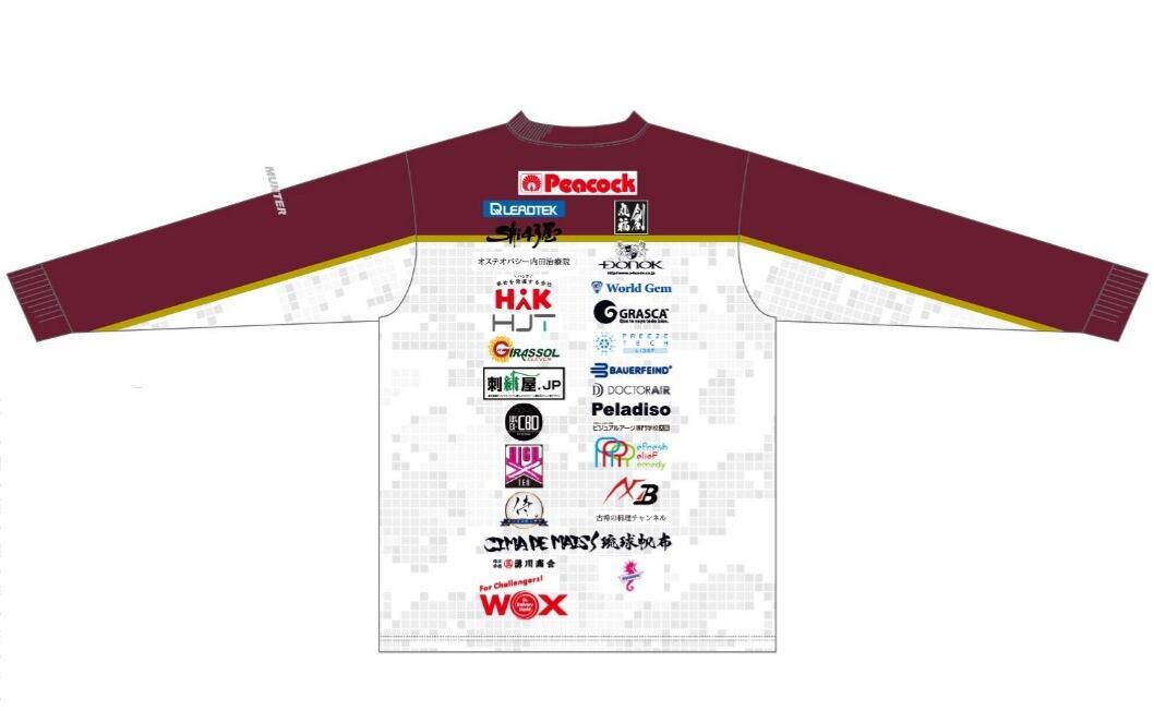 こちらは練習着の為、背中に大きな背番号を入れる事は出来ません。